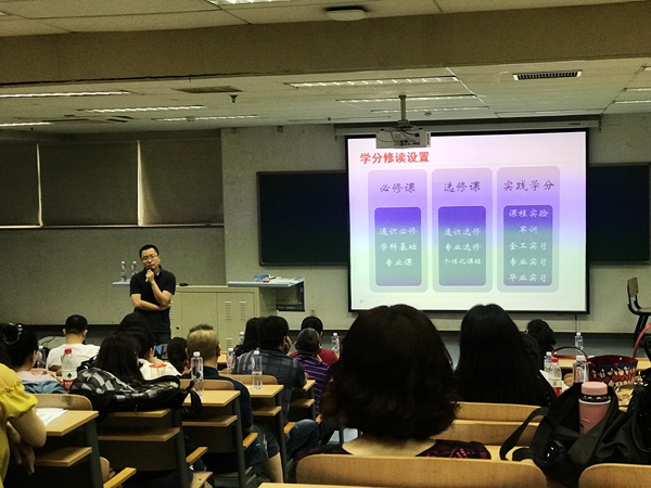 首先,李伟从学院基本情况、教学管理、规章制度、重点工作等几个方面进行了详细的介绍。同时,在大学学习方式、学分修读设置、绩点计算等方面也进行了深度的讲解。