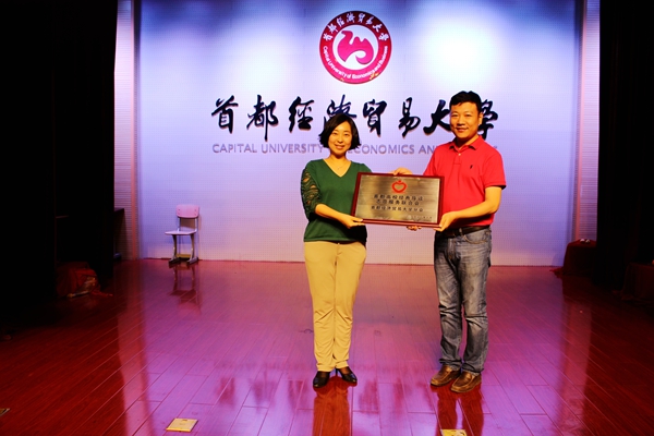 最后,首都高校经典导读志愿服务联合会负责人曹郁致辞,他认为没有读过名著的心灵是粗糙的,没有被感动过的情怀是苦涩的,没有被厚重的经典名著洗礼过的人,也许无法拥有细腻的心灵。在人的一生中,许多东西都会随着光阴的流逝而消弭,但书所带来的感动与知识却是永恒的。为了促进首经贸学生阅读经典、继承传统,首都高校经典导读志愿服务联合会首经贸分会在安工学院分团委成立,安工学院分团委书记陈蒲晶作为代表接受了曹郁的授牌!